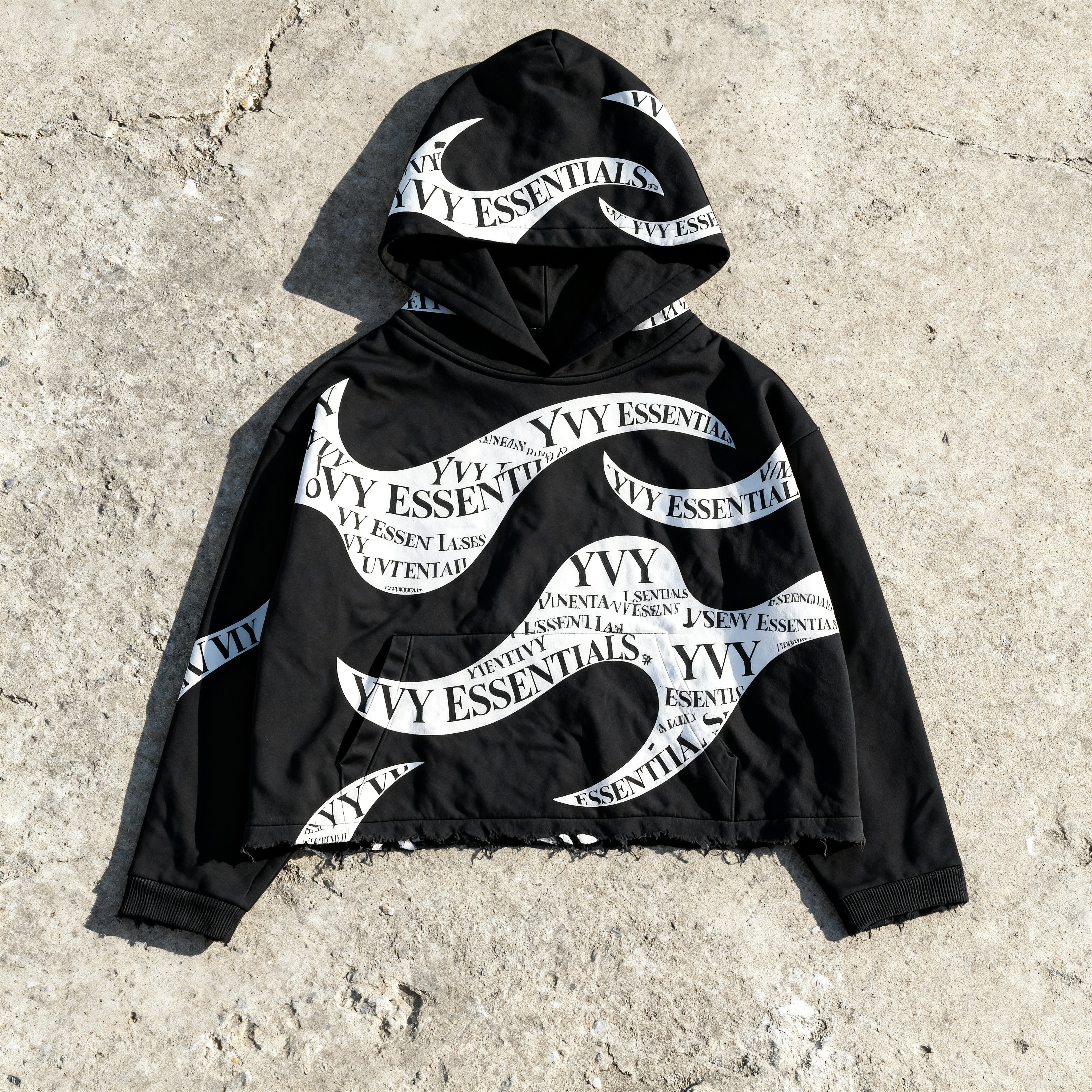 'ESSENTIAL' - Black/White Boxy Hoodie